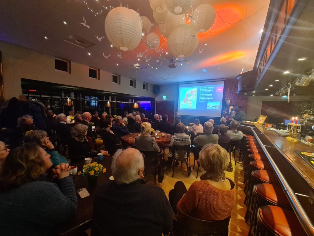 Op vrijdag 13 februari zat de zaal vol luisteraars om naar de boeiende verhalen van Jan Boven te luisteren. Een virtuele wandeling door Amsterdam vanaf de 13de eeuw. Jan Boven een oude- politieagent werkte maar liefst 38 jaar in Amsterdam. Sinds zijn pensionering volgde hij de opleiding tot Gids in Amsterdam.  Hij kent de stad Amsterdam met al haar geheimen, fabeltjes en feiten als geen ander. .De avond werd afgesloten met een pubquiz en een gezellige nazit. Kortom: een zeer geslaagde bijeenkomst, waar we zeker verevolg aan gaan geven …